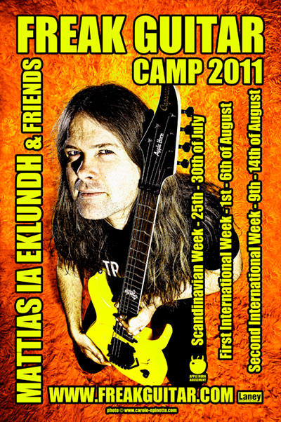 Scandinavian Week 25th - 30th of July First International Week 1st - 6th of August Second International Week 9th - 14th of August Young, old, boy/man, girl/woman, race or where you’re from doesn’t matter. It’s only about Dedication. The only of its kind, Freak Guitar Camp has during the past years rapidly grown from a small course for Swedes to what now only can be described as a major international success! Though plenty of details have been improved during the years the basic concept is still the same: what you get are six intensive days of hard work (an understatement) in the Scandinavian wilderness, hang out with like-minded guitar fanatics and get yourself a life-altering experience. ![]() The Guru... (well, hrm). "The Guru", a.k.a Mattias IA Eklundh, will lead the God-fearing classes during daytime, teaching his various unique techniques; picking, tapping, harmonics, phrasing, riffs, exotic tonality, finger-picking, reduction, poly-rhythms and odd time stuff that will turn your whole concept of music up side down! IA's six-stringed-spanking starts right after breakfast and continue until dinner in the afternoon (plus lunch and a couple of breaks for occasional caffeine and refreshments). There will also be talk about on how to make it on your own in the 21st century, how to make a living from your music, how to survive in show business, e t c. We will sink our teeth into the song-writing process and dissect several tunes to see what make them work (and what to avoid when composing). Every now and then we will throw in a Freak Hour and check out those favourite licks and beefy riffs of yours. ![]() Most of the teaching is based around demanding Freak Guitar Camp tunes accompanied by a ridiculous amount of pages in both standard notation and tablature, exclusively put together by IA for the camp, a zillion backgrounds, both with guitar and without, for you to practice your brains out to. There will also be attention paid to other interesting artists' music. IA is always working hard to put together more and more challening stuff over the years. 2011 will certainly be no exception. The Guru has already begun making new sinister music for the camp. Guitar playing isn't everything (even if we like to think so). If you want to look and sound good you need a solid groove and few are better at this than overly gifted Christian Alsing. As the sun goes down you will get to learn and try how to record various instruments, programming and editing, playing live; how to get the sound you want, preparations, troubleshooting when the shit hits the fan without loosing your cool. Christian will also go into how different arrangements may affect your music when recorded and how to "dress up" your tunes in various ways. This and tons more. Needless to say, Christian is also geared up to his teeth for Freak Guitar Camp 2011. ![]() The amazing Christian Alsing As if this wasn't enough, other prominent guest musicians will also visit the Freak Guitar Camp when you least expect it… Many fabulous players have come the camp to play, teach and simply chill out. So be it again. IA is talking to a number of interesting collegues that might show up! The camp is held just outside Gothenburg, Sweden, at a place called Härsjösand, located exactly in the middle of nowhere. (Closest airports are Landvetter International Airport and Gothenburg City Airport. You can also get to Gothenburg by ferry, train or bus. We will pick you up. The dare devil might want to drive on his/her own. A detailed map will be provided to prevent you from getting lost in the wilderness).